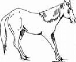 Рис. 121. Положение лошади в покое при остром асептическом диффузном пододерматите: опора на копытный мякиш передних конечностей при ходьбе, задние конечности подведены под тело следует начать через 6 часов после появления первых клинических признаков.
