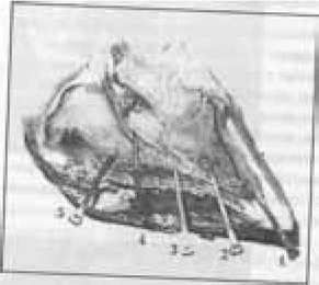 Каждое проникающее повреждение копыта инородным телом называют наколом. Особенно сильно повреждаются боковые стрелочные борозды. В зависимости от локализации проникающего инородного тела глубже повреждаются лежащие ткани, например, подкожная клетчатка, кости, копытный сустав и копытный хрящ. При повреждениях подошвы также может повреждаться копытовидная кость, особенно края копытовидной кости, толщиной с папиросную бумагу. При повреждении тела стрелки и стрелочных борозд, сухожилий глубоких сгибателей, челночной кости, связок копытовидно-челночных костей и копытного сустава и при повреждениях мякиша подушки как части копытной подушки и копытного хряща (рис. 142).